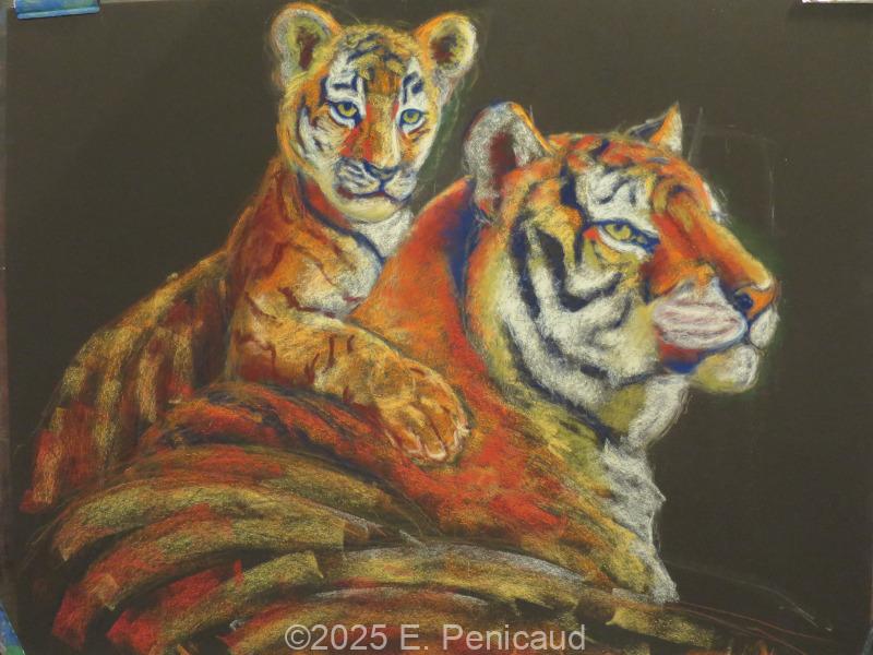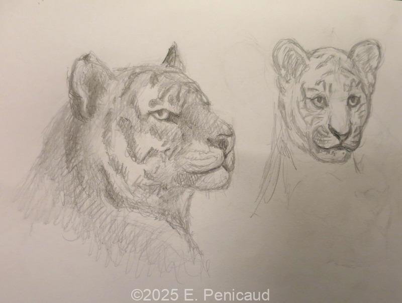 J’ai tenté de re-travailler le chat de gauche comme celui de droite réalisé lors de la dernière séance avec un peu moins de réussite.